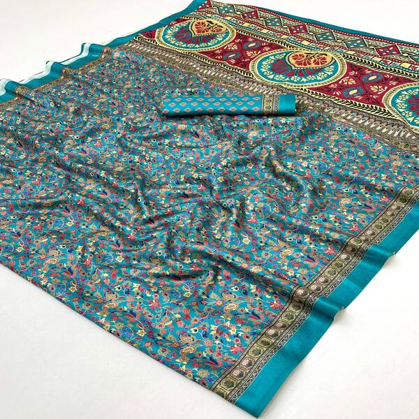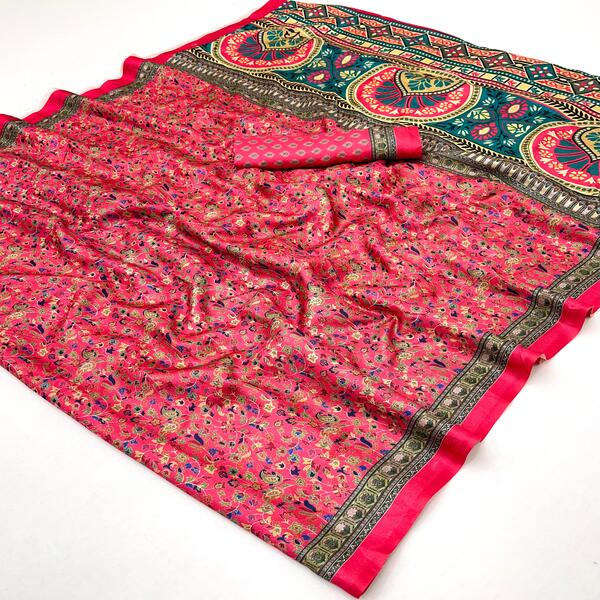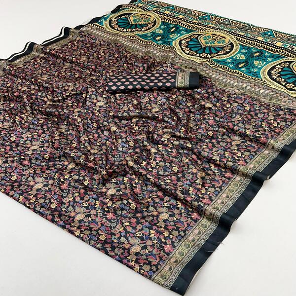 655 Piece Description : A Pashmina Silk Saree Is A Luxurious Drape Made From A Blend Of Soft Pashmina Wool And Fine Silk, Resulting In A Lightweight Yet Warm Fabric With A Rich Sheen. Known For Its Exquisite Feel And Graceful Drape, It Is Often Handwoven And Adorned With Intricate Kashmiri Embroidery Like Kashida, Featuring Designs Such As Floral Borders, Paisley, And Chinar Leaves. These Sarees Are Considered Versatile, Suitable For Both Casual And Grand Occasions Like Weddings And Festive Celebrations. Location : Gujarat, India