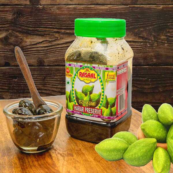 429 Bottle Net Weight : 2 Kg Description : Harad Murabba Is A Traditional Ayurvedic Sweet Preserve Made By Simmering Whole Harad (terminalia Chebula) Fruits In Sugar Syrup, Often Enhanced With Spices Like Cardamom Or Black Salt. It Has A Unique, Tangy, And Sweet (khatta-meetha) Taste, Commonly Used To Improve Digestion, Relieve Constipation, And Boost Immunity. It Acts As A Nutrient-rich, Rejuvenating Tonic. Location : Haryana, India