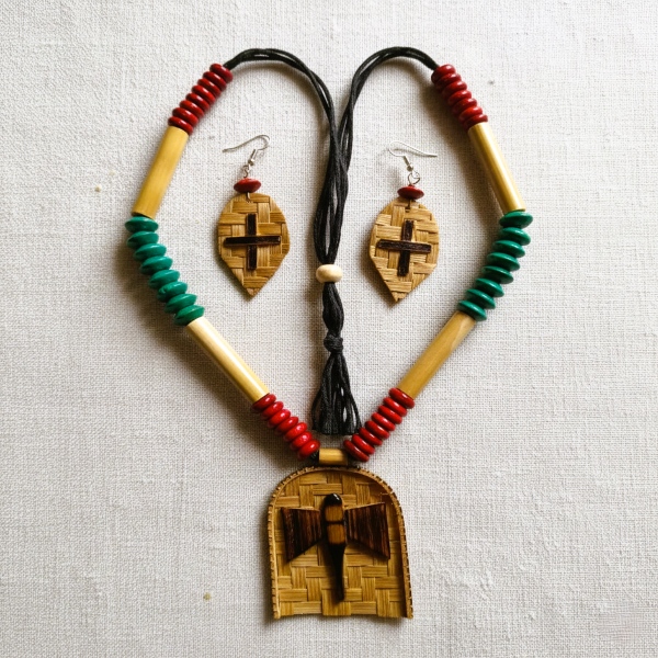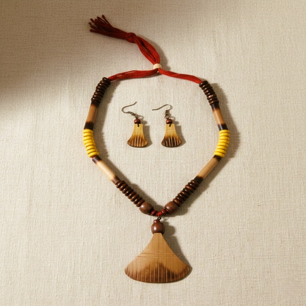 Handcrafted bamboo earrings are eco-friendly statement pieces that combine traditional artisanal skill with a modern, sustainable aesthetic. Meticulously shaped and woven from natural, renewable bamboo, each pair is ultra-lightweight, ensuring exceptional comfort for all-day wear without straining the ears. These unique accessories often feature organic textures and earthy tones, sometimes enhanced with natural seeds or subtle gold-finish accents to complement both ethnic and contemporary wardrobes. Because they are handmade by skilled artisans, every set displays individual grain variations, making them one-of-a-kind treasures that reflect a commitment to slow fashion. Versatile and skin-friendly, they serve as a sophisticated, biodegradable alternative for the environmentally conscious consumer seeking both style and purpose. Location : Tripura, India