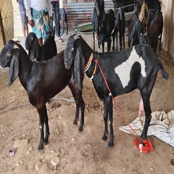 The Beetal goat is a large, dual-purpose breed from Indias Punjab region, known for high milk yield (up to 4L/day) and good meat, recognized by its large body, long drooping ears (like betel leaves), parrot-like nose, and colours like black, brown, or spotted. They adapt well to different climates, have long legs, short tails, and males sport beards, making them valuable for dairy, meat, and improving other local breeds. Location : Rajasthan, India