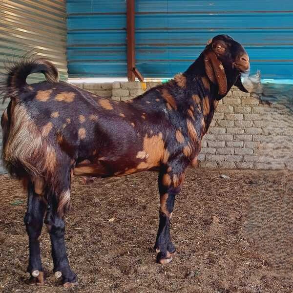 418 Kg Description : A Sirohi Khassi Qurbani Goat Is A Robust, Medium-to-large Indian Goat, Typically Brown With Darker Patches, Known For Its Sturdy Build, Strong Legs, And Good Weight Gain, Making It A Popular Choice For Meat During Festivals; These Goats Are Characterized By Their Distinctive Leafy, Drooping Ears, Small Upward-curving Horns, And Dense Hair, Thriving In Harsh Conditions And Easily Adapted To Stall-feeding, Prized For Their Quality Meat. Location : Rajasthan, India
