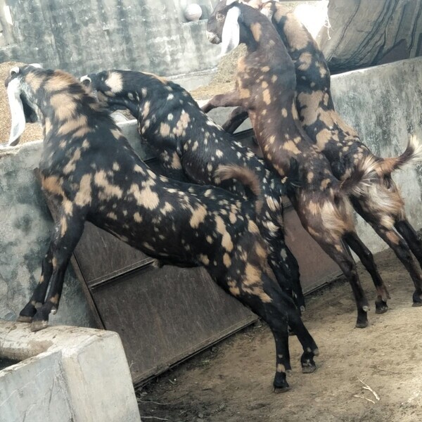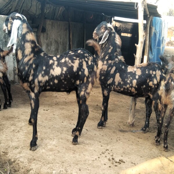 Sirohi goats are hardy, medium-sized Indian goats from Rajasthan, known for meat and milk, featuring brown coats with patches (some white), leaf-like drooping ears, small upward-curving horns, and wattles; they adapt well to harsh climates, have strong builds, and are valued for good weight gain and dual-purpose utility in both grazing and stall-fed systems. Sirohi breeder goats are mainly for meat production, known for their good weight gain and suitability for commercial farming, though they also provide a decent, albeit small, amount of milk, making them a dual-purpose breed popular in India for both meat and dairy, especially in Rajasthan and Gujarat. Location : Rajasthan, India