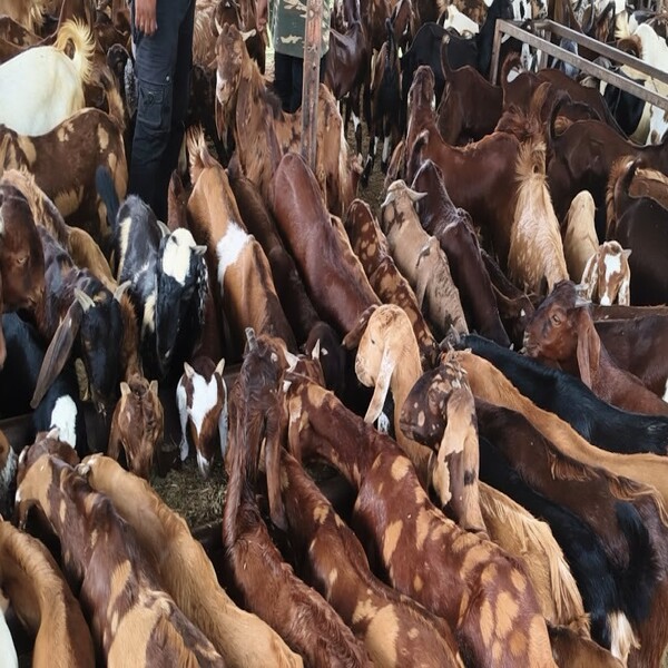 A mix breed cutting goat describes a mixed-heritage goat (not a specific breed) raised primarily for meat, valued for combining desirable traits like fast growth, hardiness, and good carcass quality from different breeds (like Boer or Kiko) for market, often with varied colours and sizes but selected for meat yield rather than milk or fibre, commonly sold by weight for slaughter. Mixing breeds produces hardier, faster-growing animals with better meat traits than some purebreds, Offering a balance of quality and cost, providing a good meat goat without the premium price of some specialized breeds. Location : Rajasthan, India