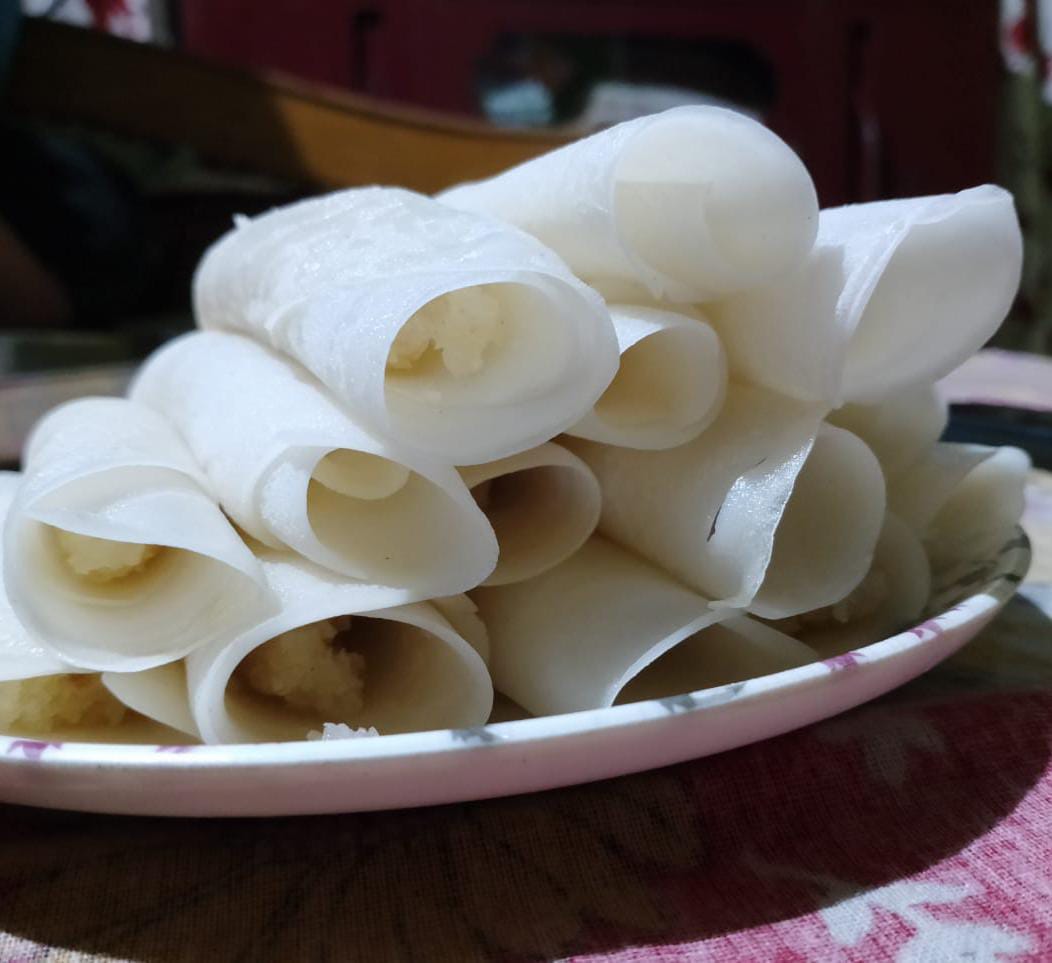 120 Packet Net Weight : 6 Piece Description : Stuffed With Delectable Jaggery, And Grated Coconut Filling, Patishapta Is One Of The Forms Of Pitha Which Is Famous Across East India Territory . Location : Assam, India
