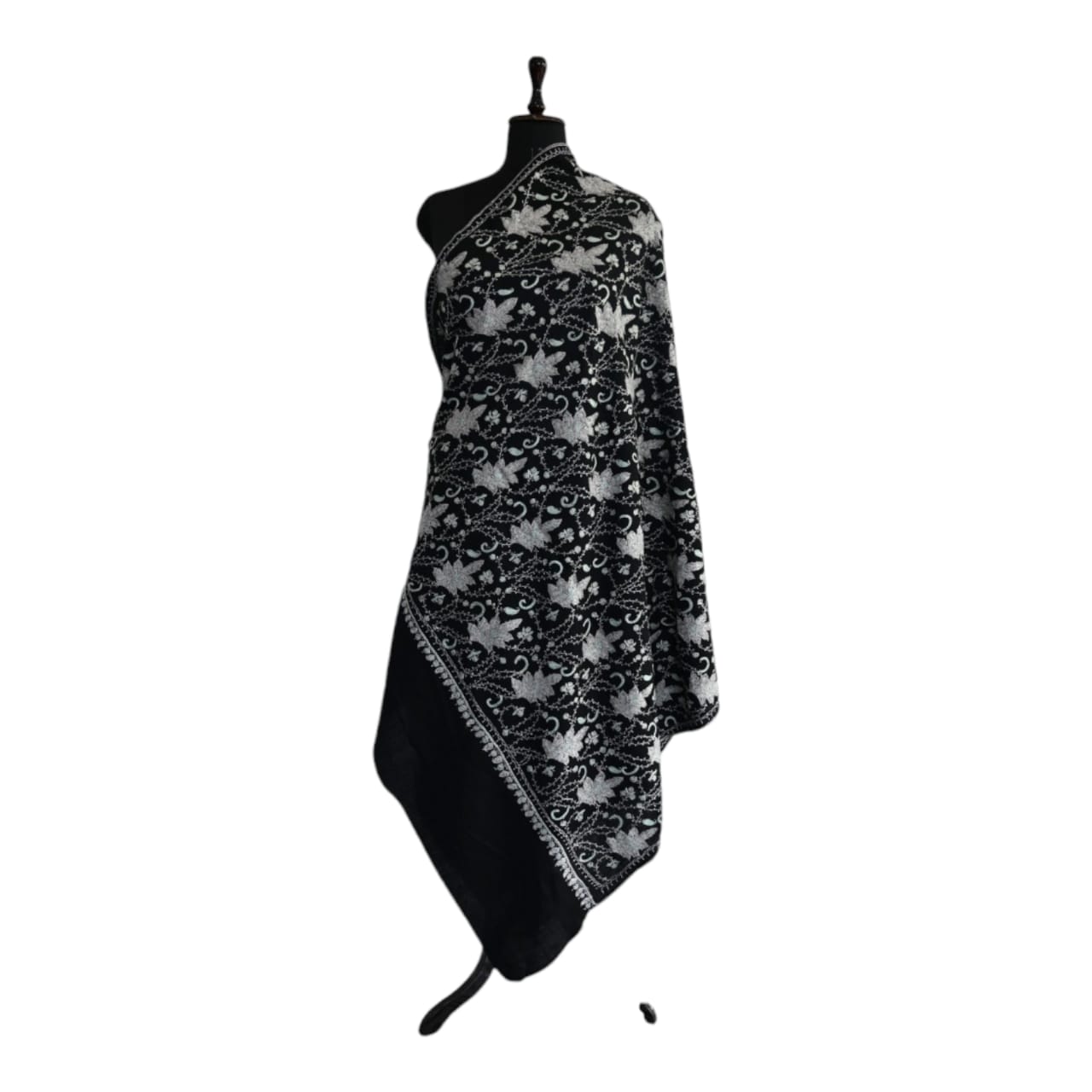 14300 Piece Description : The Pure Pashmina Sozni Embroidery Jalidar Stole Is An Exquisite Piece That Beautifully Blends Luxury With Traditional Craftsmanship. Location : Jammu & Kashmir, India