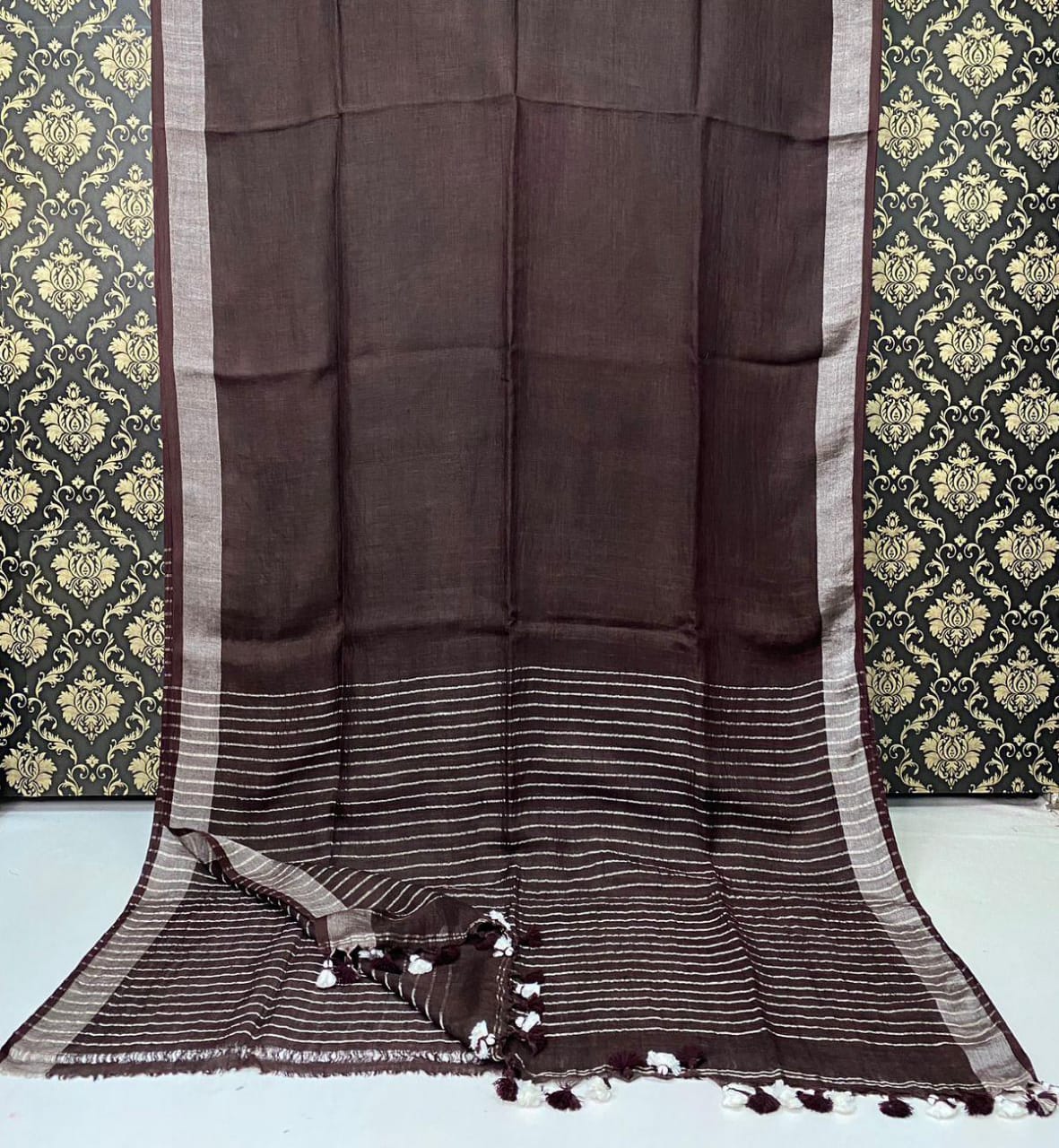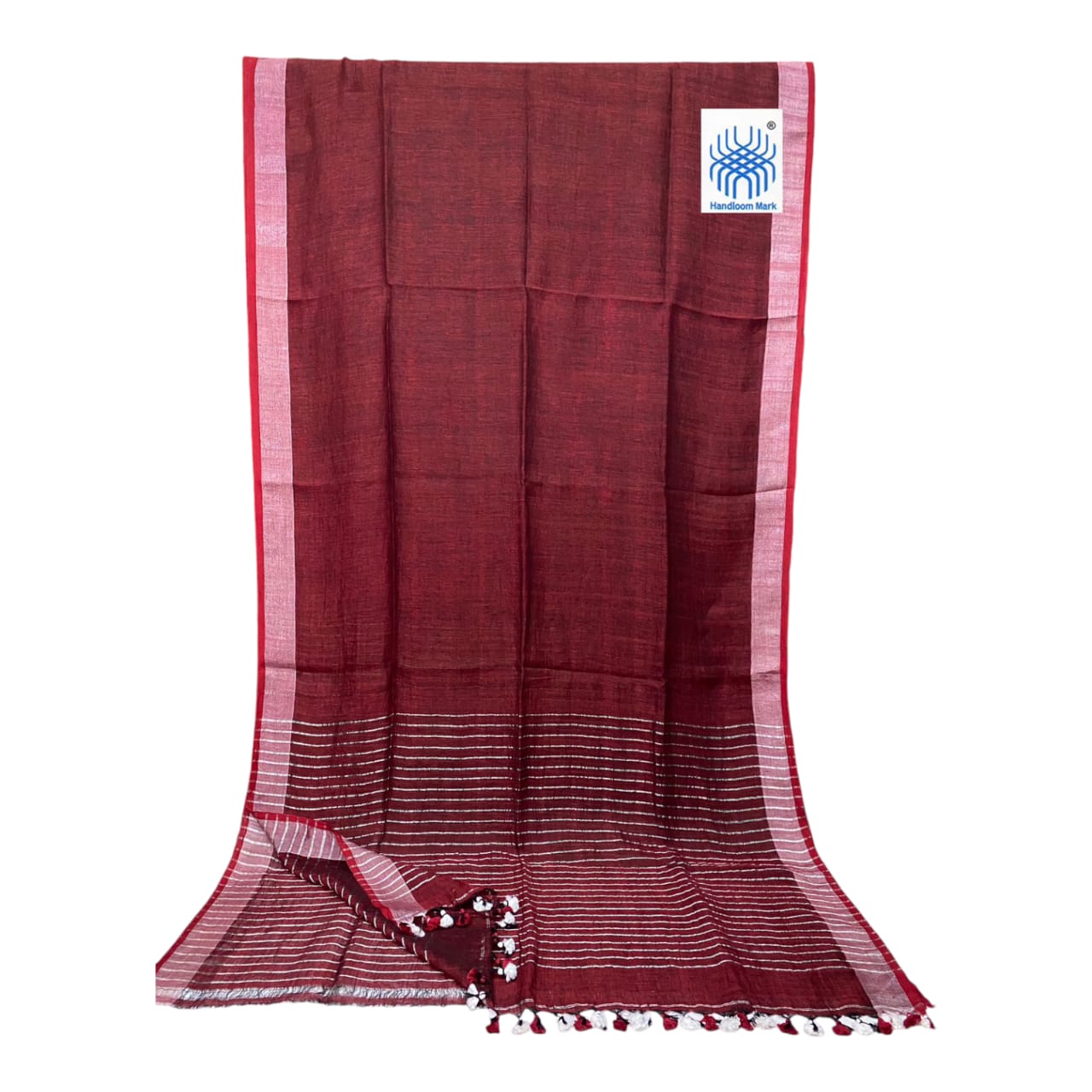 1980 Piece Description : Linen Sarees Are Known For Their Light And Soft Fabric. Its The Breezy Fabric That Makes It A Favorite During Hot Summers. Its Perfect For The Summer Season As It Is Sweat Absorbent And Also Skin-friendly. Its One Of The Most Superior Types Of Fabric In Comparison To Other Types Of Fabric. Location : West Bengal, India