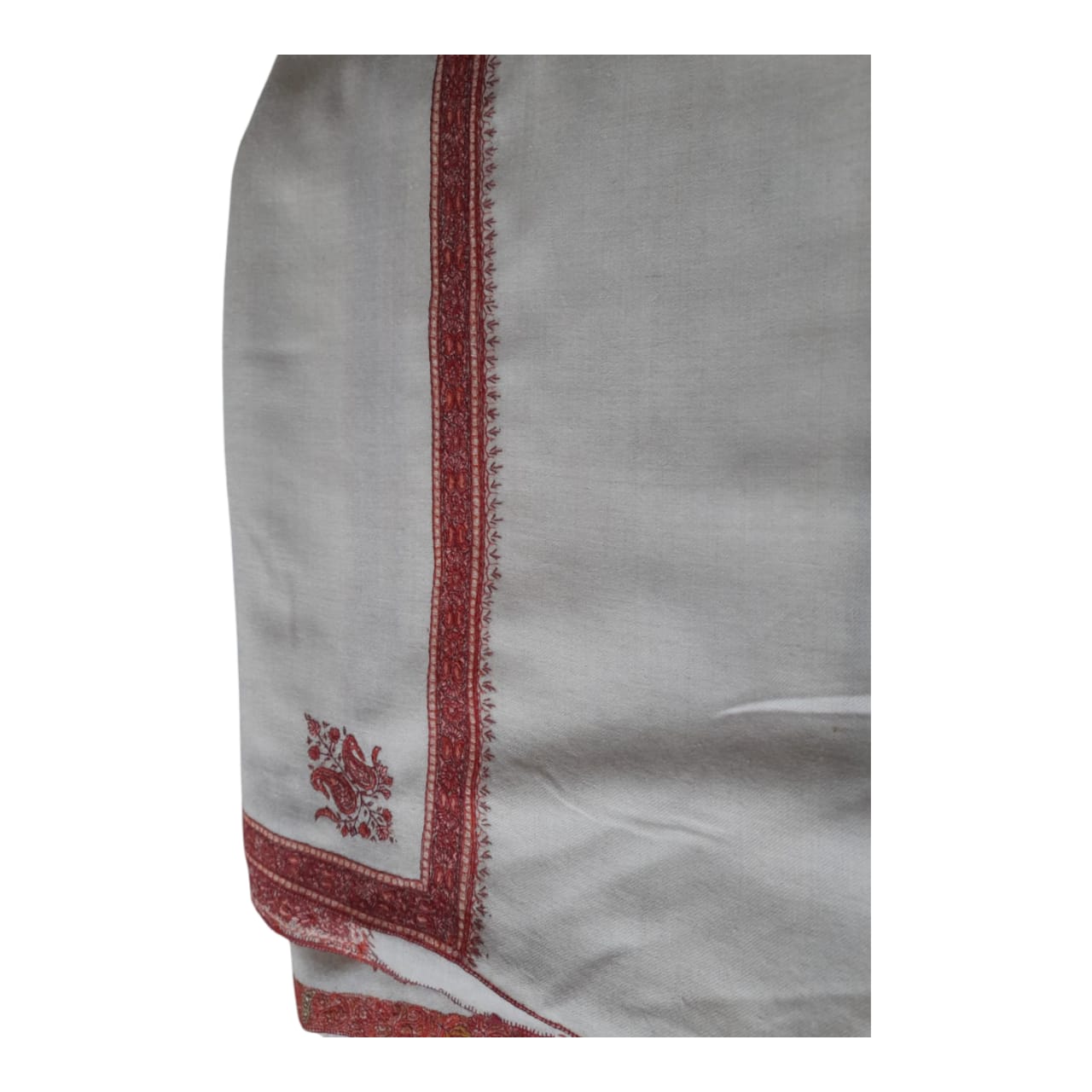 This Sozni Zari Palla Embroidered Polywool shawl is designed to keep you cozy and stylish. The elegant Seedpearl shade exudes timeless charm, ensuring it pairs effortlessly with a variety of Western wear and Traditional wear. Location : Jammu & Kashmir, India