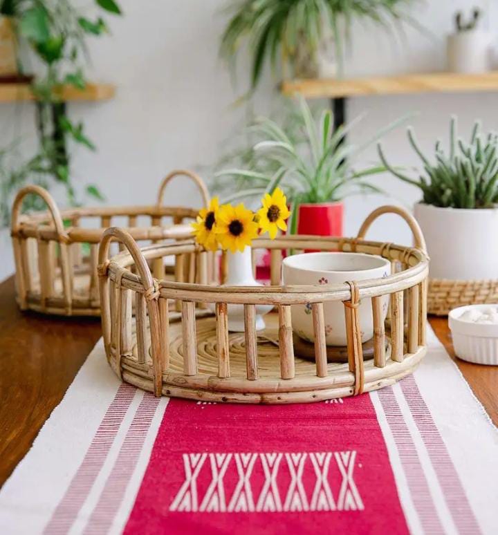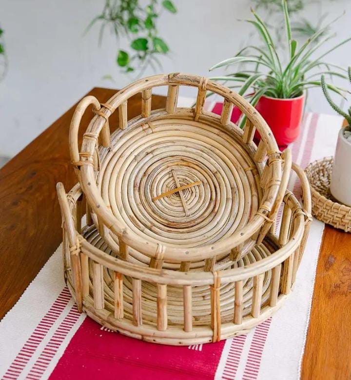 1540 Piece Description : Cane Tray. Channel Heritage And Handwoven Tribal Story With These Cane Trays. Use It As A Serving Tray For Tea And Snacks Or As A Decor Accent Piece At The Center Of Your Dining Table. Equally Useful At The Entrance To Collect Keys And Get All. Great For Outdoor Balconies Or Patio Furniture. Ideal For Farmhouse Or Garden Settings, Rustic And Bohemian Style Brings Out The Best In Picnic And Outdoor Events. Cane Tray Weaves A Natural And Organic Story To Any Decor Setting. Location : Uttar Pradesh, India