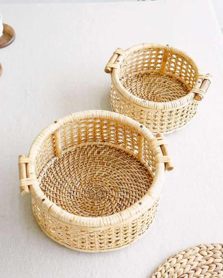 1870 Piece Description : Cane Round Tray. Channel Heritage And Handwoven Tribal Story With These Cane Trays. Use It As A Serving Tray For Tea And Snacks Or As A Decor Accent Piece At The Center Of Your Dining Table. Equally Useful At The Entrance To Collect Keys And Get All. Great For Outdoor Balconies Or Patio Furniture. Ideal For Farmhouse Or Garden Settings, Rustic And Bohemian Style Brings Out The Best In Picnic And Outdoor Events. Location : Uttar Pradesh, India