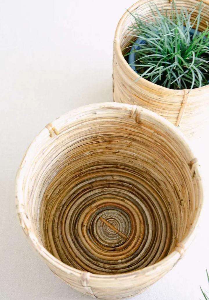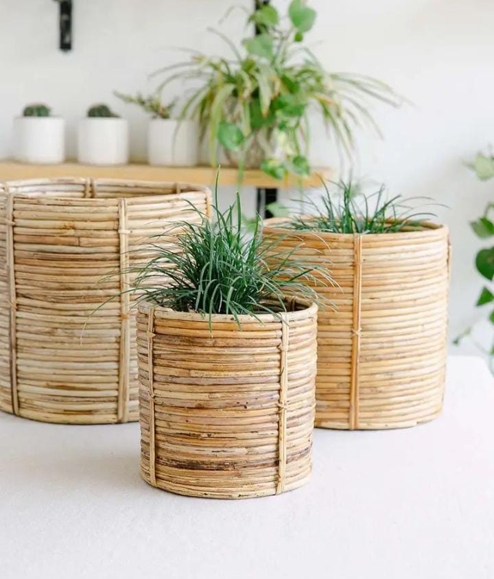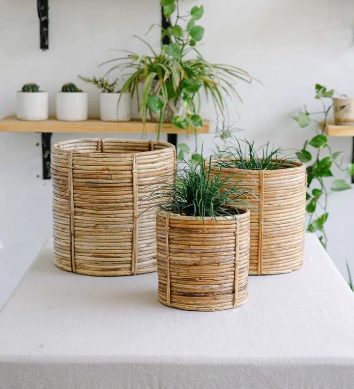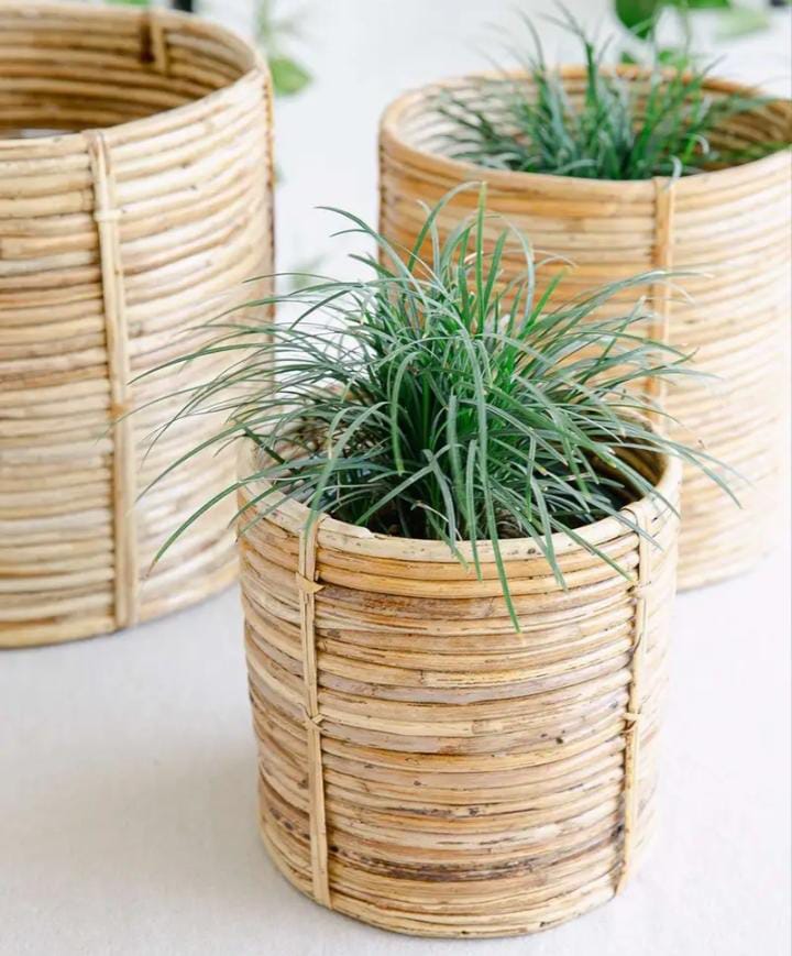 Rattan Planter. Channel heritage and handwoven style with these Rattan Cane Planters. Great for indoors, outdoors and balcony. Pair them with your living room decor or balcony setting. Compliments balcony and patio furniture. Ideal for farmhouse or garden settings, rustic and bohemian style brings out the best in outdoor events. Create a decor theme for your parties and other outdoor events with these handmade planters from Tukura Home. Location : Uttar Pradesh, India