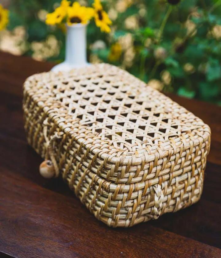 1594 Piece Description : Cane Woven Rectangular Box. Channel Heritage And Handcrafted Natural Decor Story With These Cane Box. Use It As A Decor Box, Jewellery Box Or As A Decor Accent Piece At The Center Of Your Dining Table. Equally Useful At The Entrance To Collect Keys And Get All. Bring Natural Charm To Your Office Table. Great For Outdoor Balconies Or Patio Furniture. Ideal For Farmhouse Or Garden Settings, Rustic And Bohemian Style Brings Out The Best In Picnic And Outdoor Events. Location : Uttar Pradesh, India