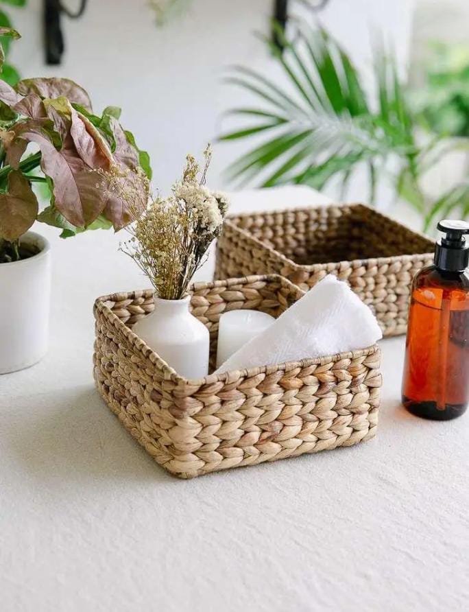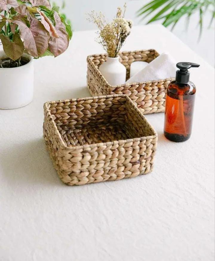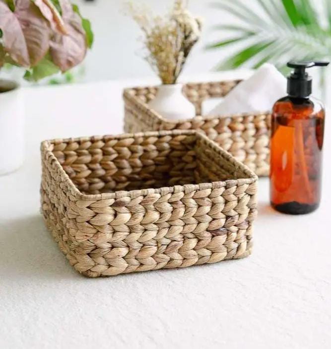 Water Grass Basket Square. Channel heritage and handwoven natural decor accent with these grass baskets. Use it as a accent piece or as a bath & body organizer . Equally useful at the entrance to collect keys and get all. Great for outdoor balconies or patio furniture. Ideal for farmhouse or garden settings, rustic and bohemian style brings out the best in picnic and outdoor events. Ideal as a declutter for table or as an accent piece. Dazzle your decor with these natural and earthy baskets. Location : Uttar Pradesh, India
