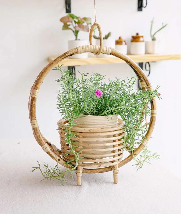 1594 Piece Description : Rattan Cane Hanging Planter. Channel Heritage And Handwoven Style With These Cane Hanging Planters. Great For Indoors, Outdoors And Balcony. Hang Them Long Or Short Depending On Your Space. Compliments Balcony And Patio Furniture. Ideal For Farmhouse Or Garden Settings, Rustic And Bohemian Style Brings Out The Best In Outdoor Events. Create A Decor Theme For Your Parties And Other Outdoor Events With These Handmade Planters From Tukura Home. Location : Uttar Pradesh, India