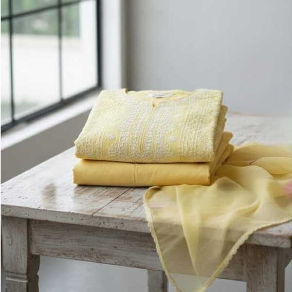 Home > Handlooms & Handcrafted > Dress Materials > Yellow Chikankari Suit