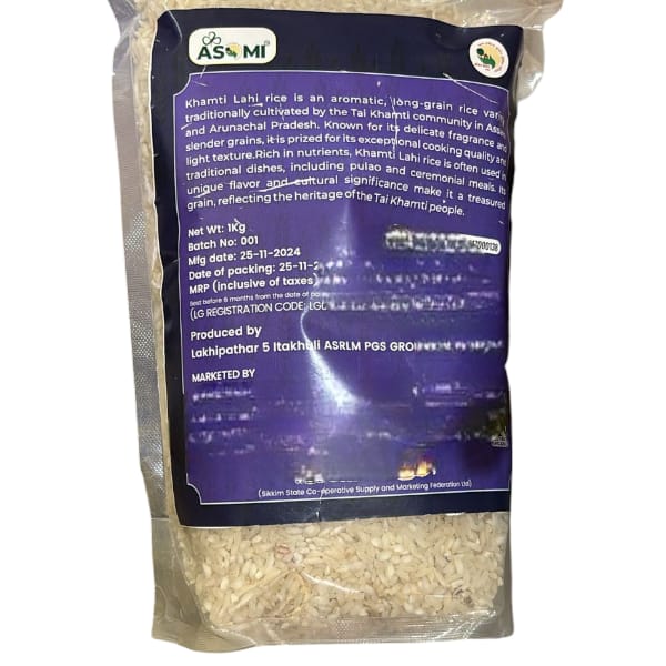 154 Packet Net Weight : 1 Kg Description : Khamti Lahi Rice Is A Strongly Scented Sticky Rice Variety Grown By Traditional Khampti Tribal Farmers In Namsai Region. The Tai Khamti Tribes From The Eastern Part Of The State Do Not Use Sticky Rice Every Day But Reserve It For Religious Or Special Occasions Like Marriages. Location : Assam, India