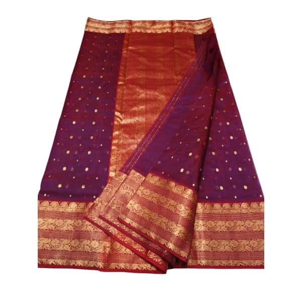 a single line of dense and intricately woven motifs is created, often running parallel to the border or throughout the body of the saree. Location : Madhya Pradesh, India