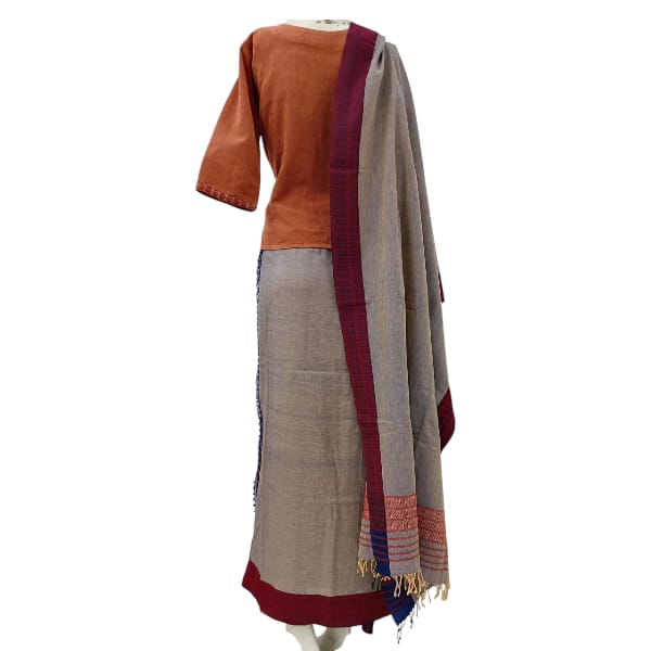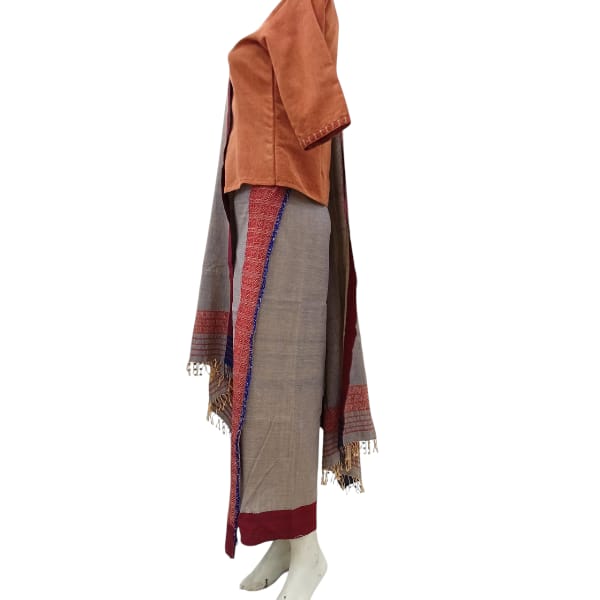 19800 Piece Description : The Gale Wraparound Puanchei Dress Epitomises Arunachal Pradeshs Artisanal Excellence. Woven By Skilled Craftsmen Using Cotton Warp, Weft, And Extra Weft, It Showcases Intricate Patterns And Vibrant Hues That Reflect The Regions Rich Cultural Heritage. Location : Arunachal Pradesh, India