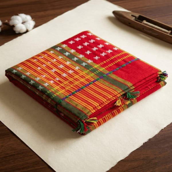 Cotton stoles are not only fashion accessories but also cultural symbols deeply rooted in the rich heritage of India. They are lightweight, breathable, and unique . Location : Tripura, India