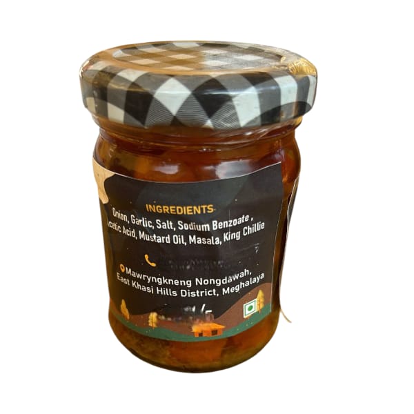 195 Bottle Net Weight : 150 Gram Description : King Chilli Pickles Main Specialty Is Its Intense, Fiery Heat And Bold Flavor, Stemming From The Use Of The World-renowned Bhut Jolokia (also Known As Naga King Chilli Or Ghost Pepper). Location : Meghalaya, India