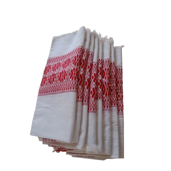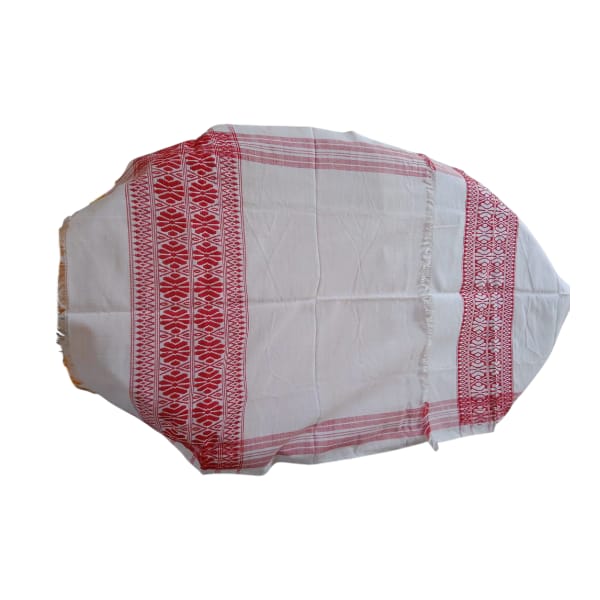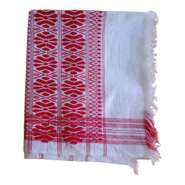 286 Piece Description : The Gamosa, A Traditional Assamese Handwoven Cloth, Is A White Rectangular Piece Of Fabric With Red Or Maroon Borders And Often Features Woven Motifs, Serving As A Symbol Of Respect, Hospitality, And Cultural Identity, Particularly In Assam. Location : Assam, India