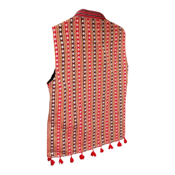 660 Piece Description : The Missing Traditional Waistcoat Is A Handwoven Garment, Likely Made By Mishing Women Artisans, Featuring Centuries-old Designs Characteristic Of The Idu Mishmi Tribe Of Arunachal Pradesh, And Is Often Used In Social Functions Or As A Fashion Trend. Location : Assam, India