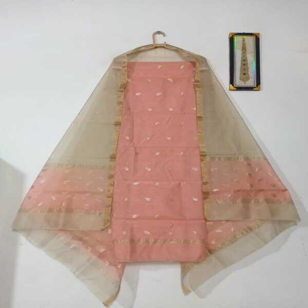 3905 Piece Description : A Chanderi Cotton Suit Is A Stylish And Comfortable Garment Made From Chanderi Fabric, Known For Its Lightweight, Breathable, And Slightly Translucent Nature. It Often Features Delicate Designs Like Geometric Shapes, Peacocks, Floral Patterns, Or Traditional Coins. The Fabrics Sheen, Achieved Through The Weaving Of Silk, Cotton, And Zari Threads, Gives It A Luxurious Feel. Location : Madhya Pradesh, India