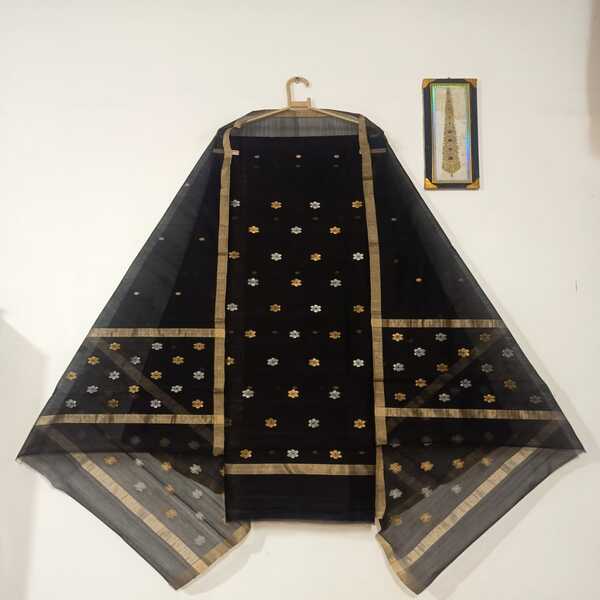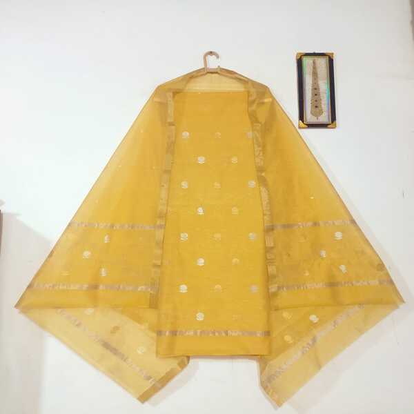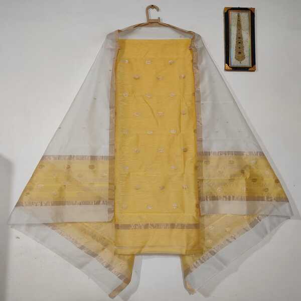 3905 Piece Description : A Chanderi Cotton Suit Is A Stylish And Comfortable Garment Made From Chanderi Fabric, Known For Its Lightweight, Breathable, And Slightly Translucent Nature. It Often Features Delicate Designs Like Geometric Shapes, Peacocks, Floral Patterns, Or Traditional Coins. The Fabrics Sheen, Achieved Through The Weaving Of Silk, Cotton, And Zari Threads, Gives It A Luxurious Feel. Location : Madhya Pradesh, India