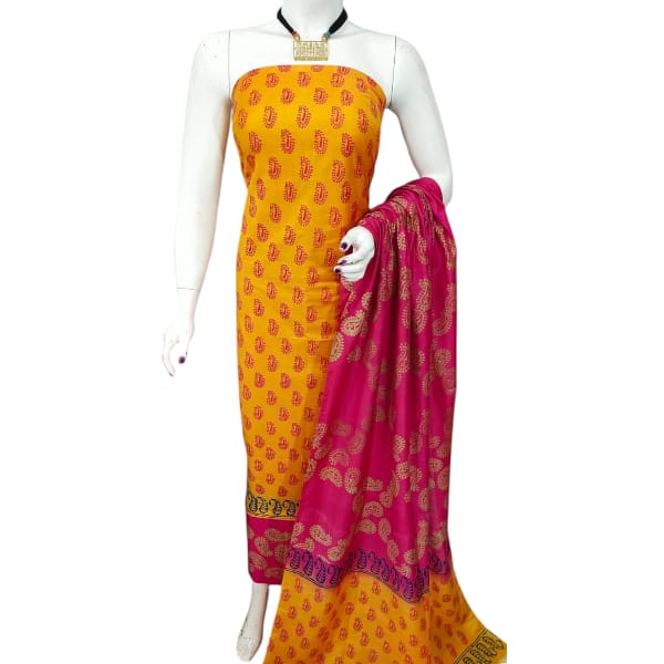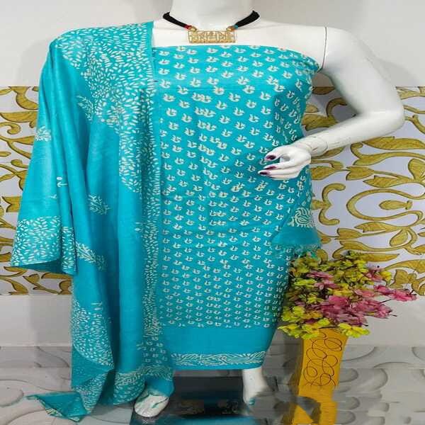 880 Set Description : A Batik Print Suit Is A Garment Adorned With A Unique Print Created Using A Wax-resist Dyeing Technique. This Traditional Method Involves Applying Wax To Fabric In Specific Areas, Then Dyeing It, And Finally Removing The Wax To Reveal Intricate Patterns. The Resulting Print Features Vibrant Colors And Designs, Making Batik Suits A Distinctive And Stylish Choice. Location : Bihar, India