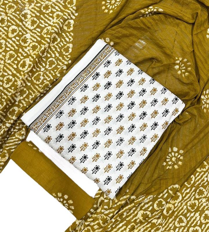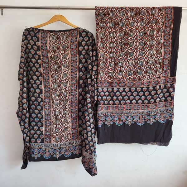 3960 Set Description : A Hand Block Printed Maheshwari Silk Suit Is A Traditional Indian Outfit Crafted From Maheshwari Silk, Known For Its Lightweight Texture And Elegant Sheen. The Fabric Features Intricate Patterns Created Using The Age-old Technique Of Hand Block Printing, Where Artisans Stamp Designs Onto The Silk Using Carved Wooden Blocks. This Blend Of Luxurious Fabric And Artisanal Printing Results In A Stylish And Culturally Rich Ensemble, Perfect For Both Casual And Festive Occasions. Location : Madhya Pradesh, India