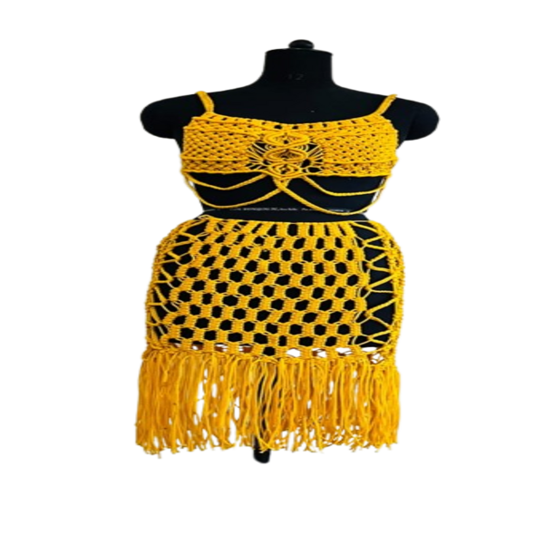 2750 Piece Description : A Macrame Cord Dress Is A Garment Crafted Using Macrame, A Fiber Art Technique That Involves Knotting Threads Or Cords To Create Patterns And Textures. These Dresses Are Often Designed To Be Versatile And Can Be Worn For Various Occasions, Including Beachwear, Festivals, And Special Events. Location : Jammu & Kashmir, India