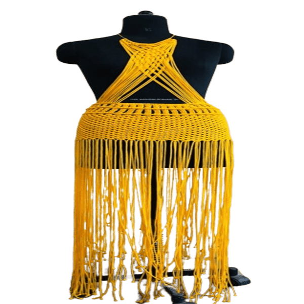 A macrame cord dress is a garment crafted using macrame, a fiber art technique that involves knotting threads or cords to create patterns and textures. These dresses are often designed to be versatile and can be worn for various occasions, including beachwear, festivals, and special events. Location : Jammu & Kashmir, India