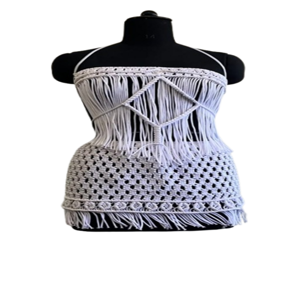 3189 Piece Description : A Macrame Cord Dress Is A Garment Crafted Using Macrame, A Fiber Art Technique That Involves Knotting Threads Or Cords To Create Patterns And Textures. These Dresses Are Often Designed To Be Versatile And Can Be Worn For Various Occasions, Including Beachwear, Festivals, And Special Events. Location : Jammu & Kashmir, India