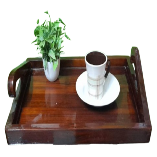 A wooden tray is a flat, shallow platform made of wood, primarily used for serving food, drinks, or other items. It can also serve as a decorative piece or for organizing various household items. Wooden trays are known for their natural beauty, durability, and versatility. Location : Assam, India