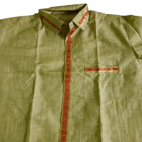 825 Piece Description : A Ghicha Shirt Is A Garment Made From Ghicha Silk, A Natural, Handwoven Fabric Derived From Tussar Silk. It Is Known For Its Smooth, Lustrous Appearance And A Slightly Uneven Texture Due To The Hand-weaving Process. Ghicha Silk Is Often Used For Its Strength And Sheen, And The Fabrics Natural Color Range From Soft Cream To Light Beige. Location : Assam, India