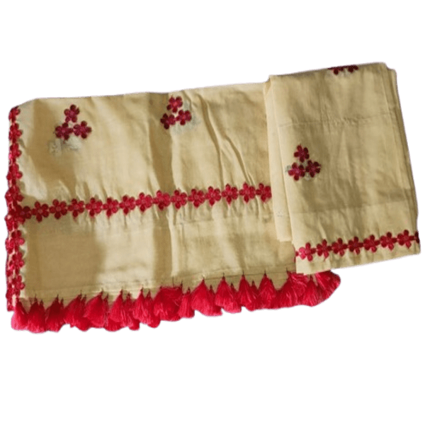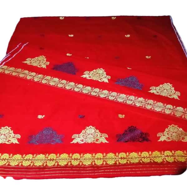825 Set Description : An Assamese Mekhela Sador With Applique Work Is A Traditional Two-piece Garment, Featuring A Skirt-like Lower Part (mekhela) And A Drape (sador) Adorned With Decorative Fabric Pieces Stitched Onto The Base Fabric. This Technique, Known As Applique, Adds Intricate Designs And Patterns To The Fabric, Enhancing The Overall Aesthetic Appeal Of The Attire. The Applique Work Can Be Done By Hand Or Machine, And The Fabric Pieces Can Be Of Various Shapes, Colors, And Textures. Location : Assam, India