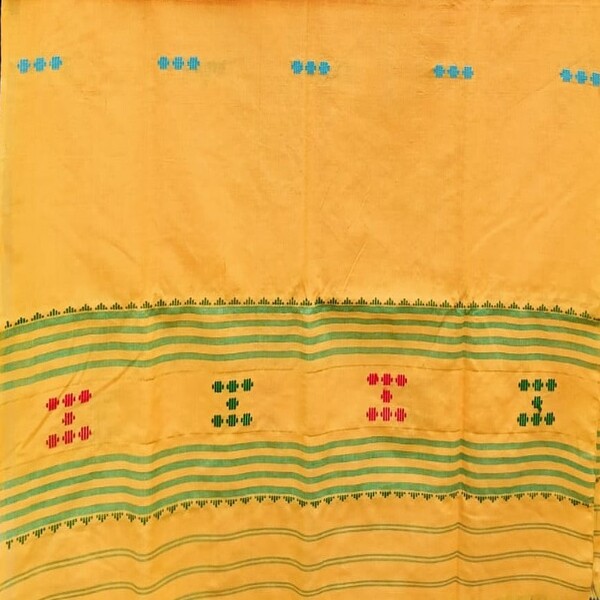 1100 Set Description : The Masraj Mekhela Chadar Is A Traditional Two-piece Attire Worn By Women In Assam, India. The Mekhela, A Cylindrical Skirt, Drapes From The Waist Down, Typically With A Few Pleats Tucked In At The Right Side. The Chador, The Upper Part, Is A Long Fabric Draped Around The Upper Body And Tucked Into The Mekhela, Similar To A Saree Pallu. It Is Crafted From Masraj (mashru) Silk, A Hand-woven Blend Of Silk And Cotton Known For Its Smooth, Shiny Silk Surface And Breathable Cotton Underside. These Garments Are Renowned For Their Intricate, Hand-woven Ornamental Designs Featuring Floral, Animal, Or Geometrical Motifs, Reflecting Assamese Culture And Nature. Masraj Mekhela Chadors Are Worn For Various Occasions, From Daily Wear To Formal Events, Symbolizing The Rich Cultural Heritage And Skilled Weaving Traditions Of Assam And Gujarats Kutch Region, Where Mashru Silk Originates. Location : Assam, India